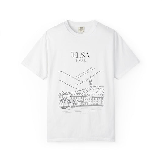 Jelsa, Croatia Sketch Tee | Unisex Garment-Dyed T-Shirt
