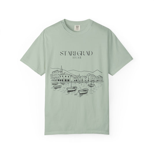 Stari Grad, Hvar, Croatia Sketch Tee | Unisex Garment-Dyed T-Shirt