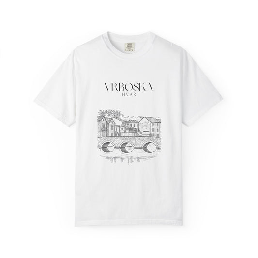 Vrboska, Hvar, Croatia Sketch Tee | Unisex Garment-Dyed T-Shirt