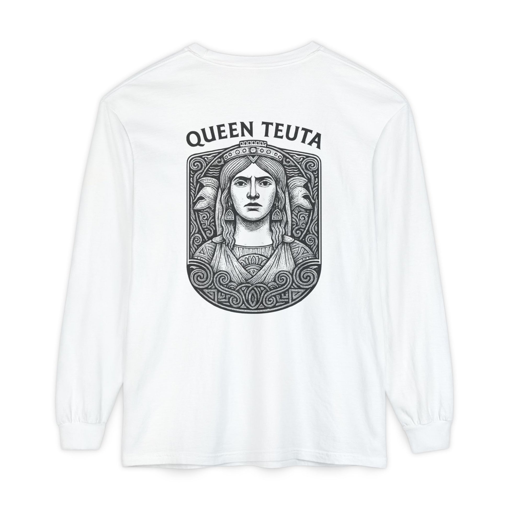 Queen Teuta Long Sleeve T-Shirt | Unisex Garment-Dyed Top, Casual Wear, Gift for History Lovers, Comfortable Style, Unique Design