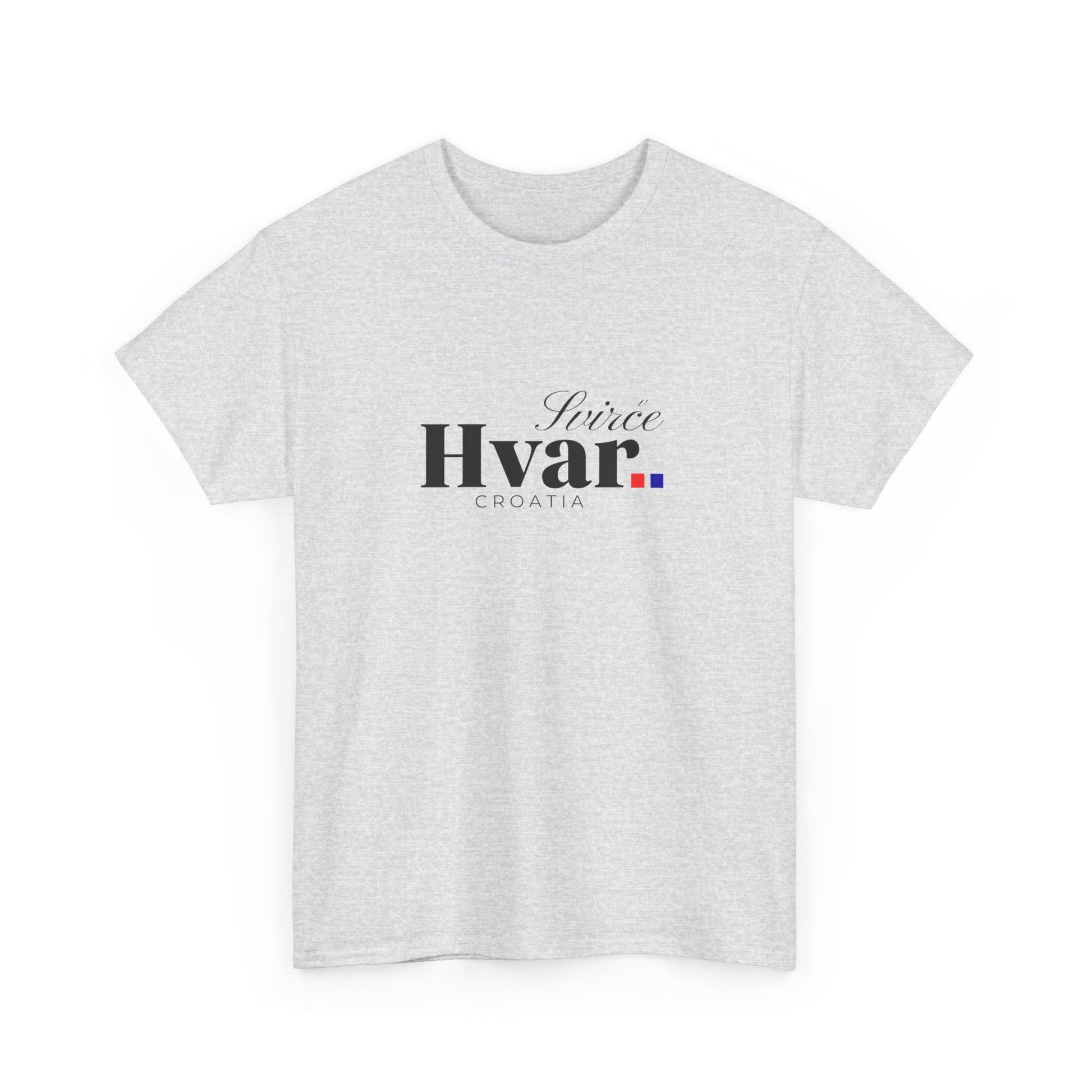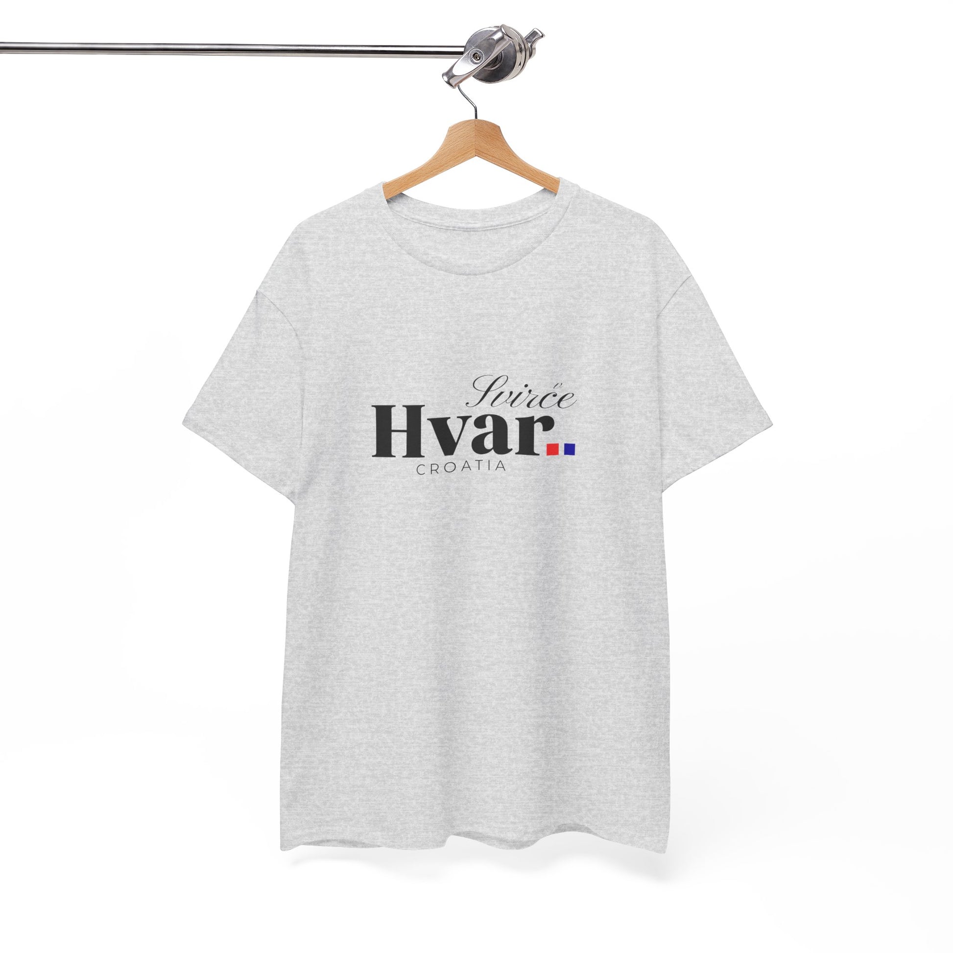 SVIRČE HVAR Tee – Gildan® 5000 Celebrate the heart of Hvar’s wine country with the SVIRČE HVAR Tee — a clean, minimalist design honoring one of the island’s most beloved inland villages. Known for its vineyards, olive groves, and timeless Dalmatian charm, Svirče inspires this understated yet striking design featuring elegant typography and the Croatian tricolor accent.
